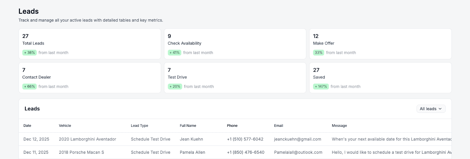 Just as important, leads should not scatter across inboxes or notifications. Dealers want one place to see who reached out and what they asked about.